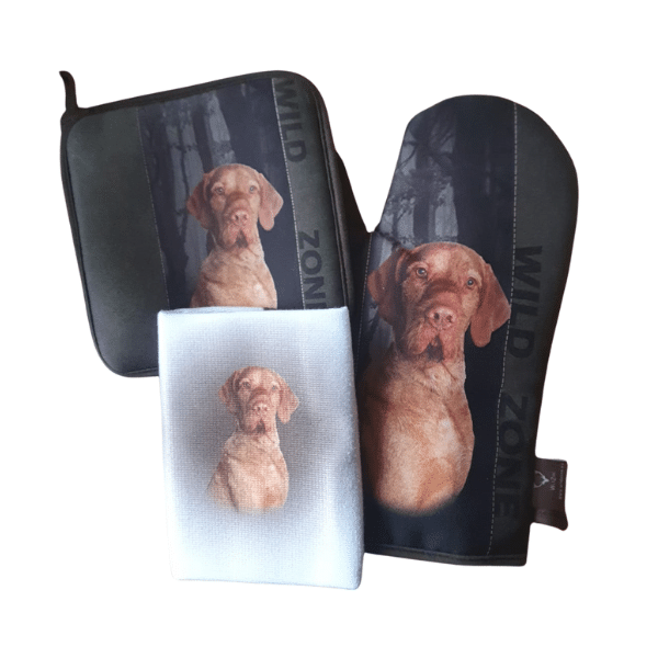 Zoek je een leuk cadeau voor een hondenliefhebber of ben je zelf de gelukkige ontvanger? Dit set is een prachtig cadeau voor elke keuken prins of prinses. Het is een mooi en functioneel accessoire dat zeker in de smaak zal vallen. Deze set met de afbeelding van jouw favoriete hond maakt het erop maakt het koken, niet alleen leuker, maar voegt ook stijl toe aan elke keuken.